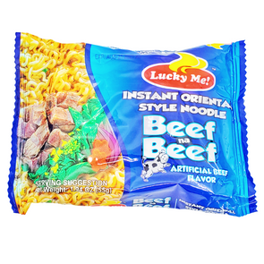 Lucky Me Beef Instant Noodle Soup is typically enjoyed as a fast, convenient meal or snack. Simply boil the noodles with the seasoning packet for a hot, savory beef noodle soup — ideal for busy mornings, afternoon meriendas, or late-night comfort.